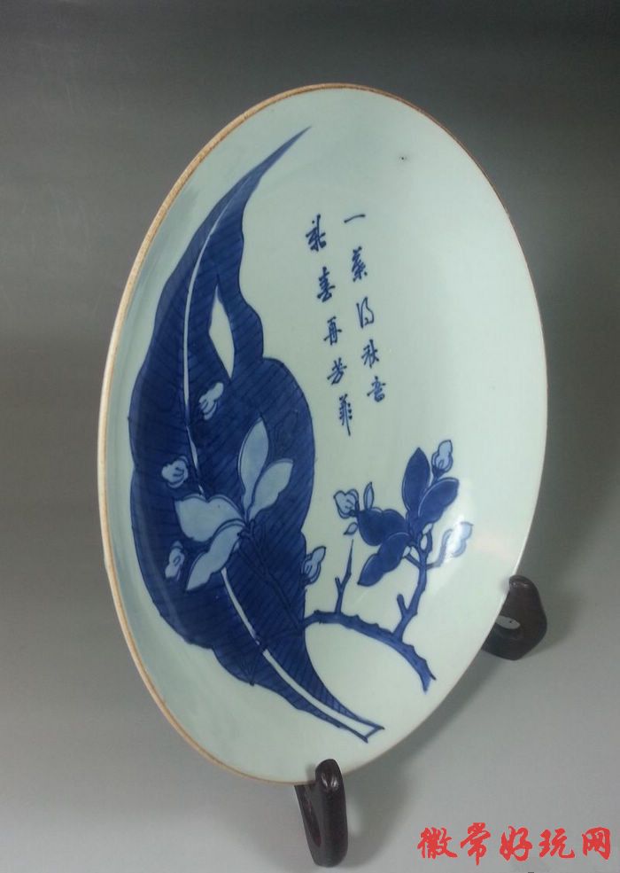 首页 -> 古玩地摊 -> 顺治青花诗文秋叶盘2