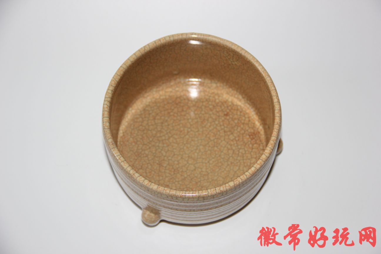 宋代哥窑三足香炉,高9厘米,宽13.2厘米。包浆自然,形制完整,坚实牢固一级品相!古色古香当今市场相同形制不是很容易见到的!收藏价值极高!网店【议价销售】=请戳撒:http://www.8uuu8.com/company/hw15062221030365/index.html更欢迎至实体店:安徽合肥琥珀山庄精品古玩城143号。手机号和微信号:15209834118