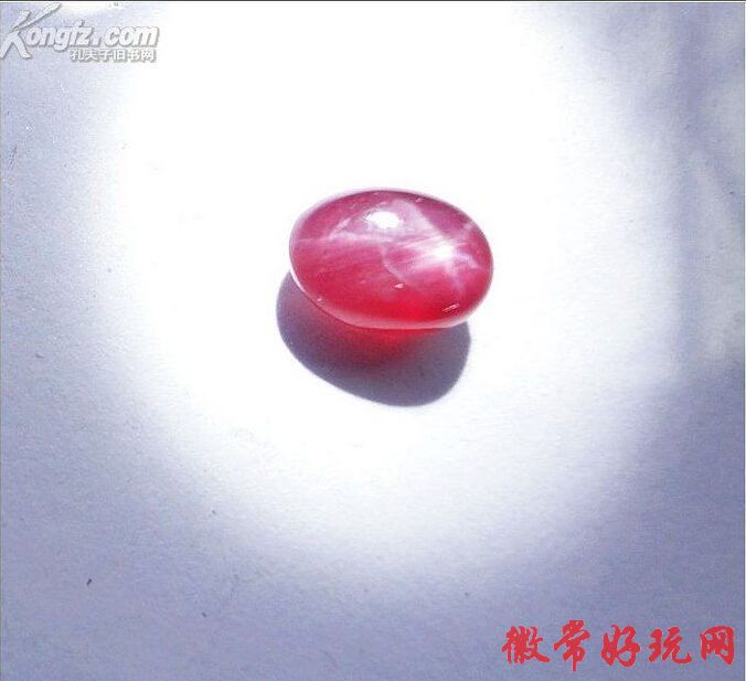 重2克拉,长7.8mm宽6.5mm厚3.5mm,色泽红艳纯正,晶莹剔透,六射星线。