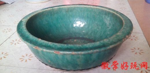 乡下收来的清代绿釉大盆,直径36厘米,厚重,和现在的洗脸盆差不多大小,可能就是古代的脸盆。厚重器,釉面如哥釉般的开片,滋润如玉,整体完好,有些使用过程中造成的磕釉,具体见图,包老包真,快递是按重量收费,厚重的所以贵一些,包老包真
