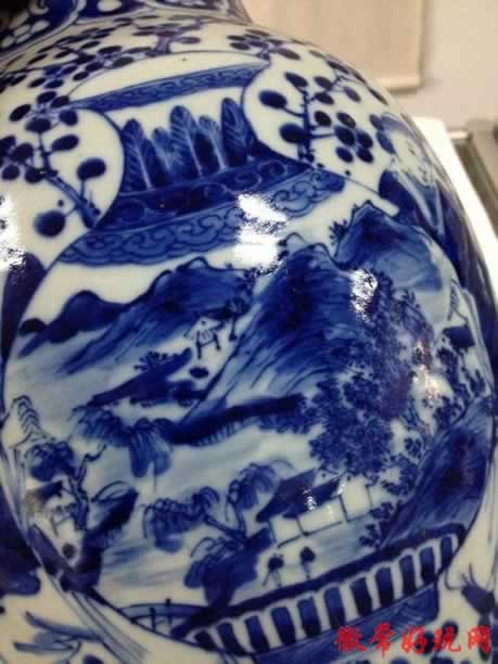 店铺商品 -> 【sh981】清代青花人物山水花鸟大瓶